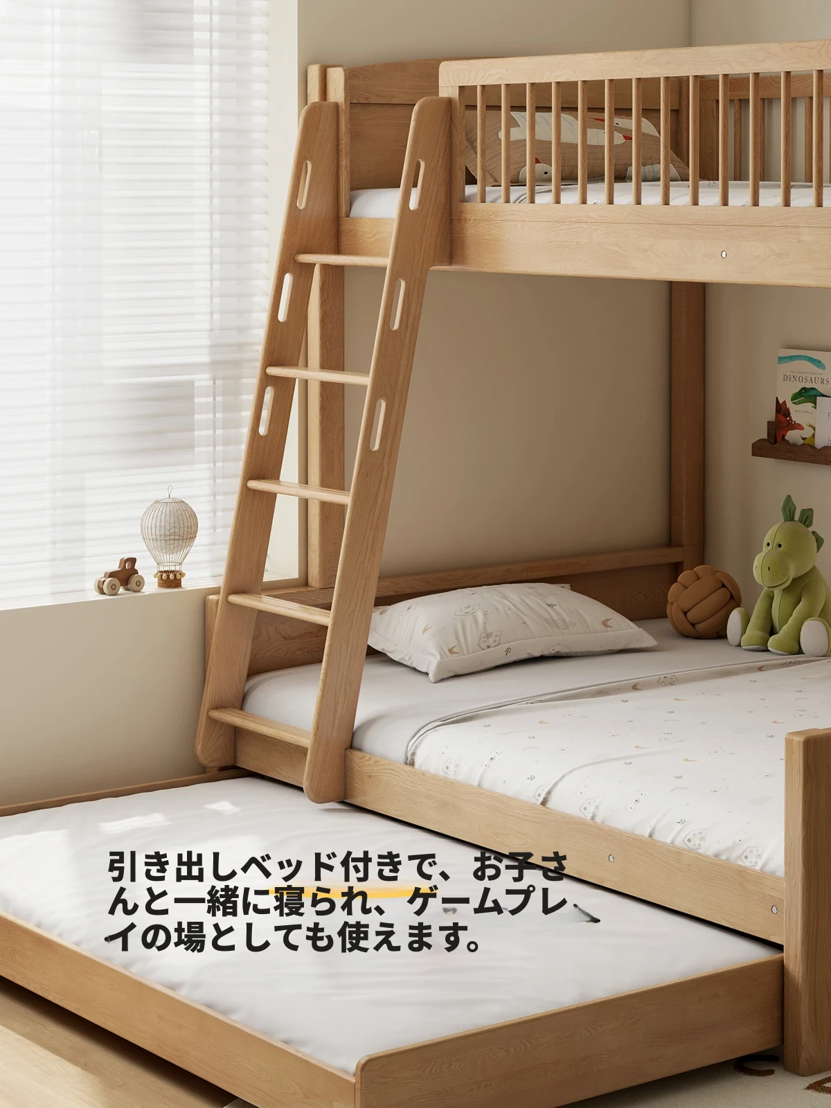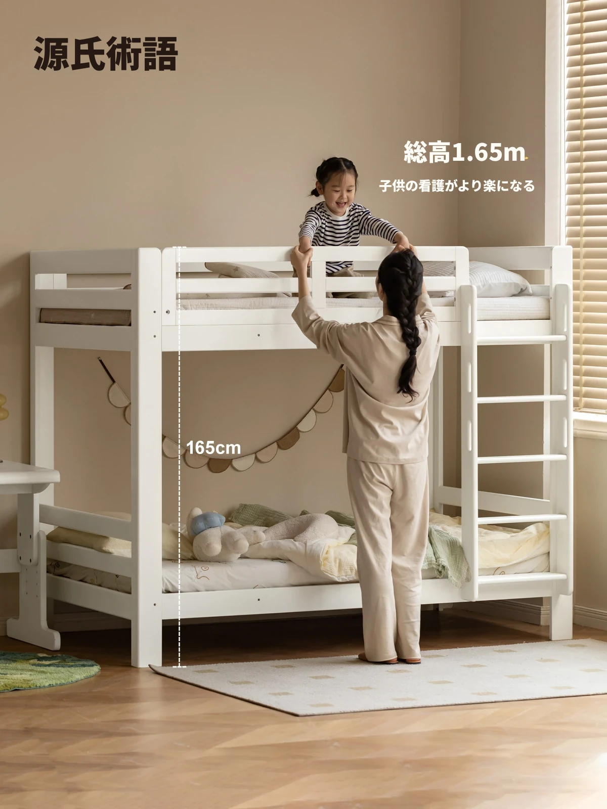 源氏木语の天然木製子供用ベッド|狭い部屋に最適な省スペース設計!モダンでシンプルなデザインの多機能二段ベッド。快適な一人用ベッドで、成長するお子様にもぴったり!