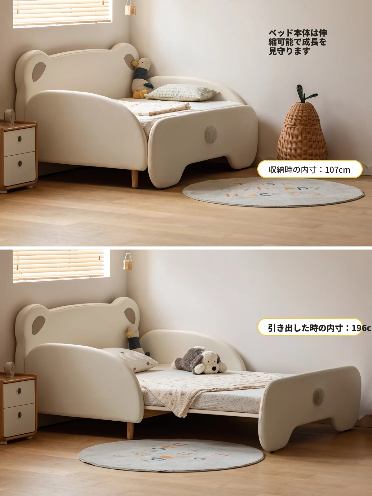源氏木语 子供用 伸縮可能なソフトパッケージベッド 男の子・女の子向け カートゥーンデザイン コンパクトな一人用ベッド 引き出し付き 小スペースに最適!おしゃれで機能的な寝具で快適な睡眠を実現!