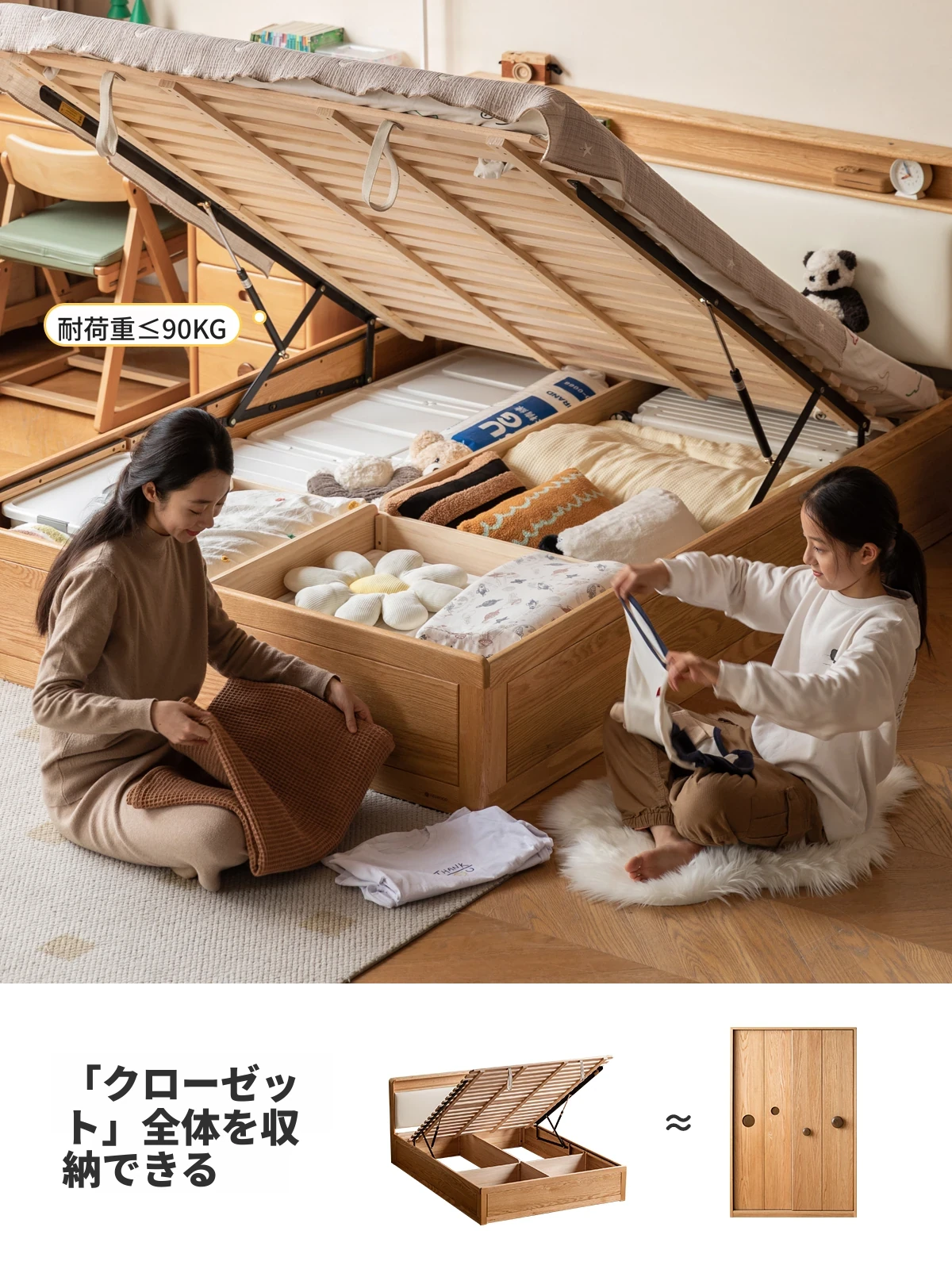 源氏木语 子ども用天然木製ベッド 小スペース向け 男の子・女の子に最適 シンプルデザインのオーク材 シングルベッド 室内用ベッド 収納機能付き おしゃれで機能的な寝室に最適!