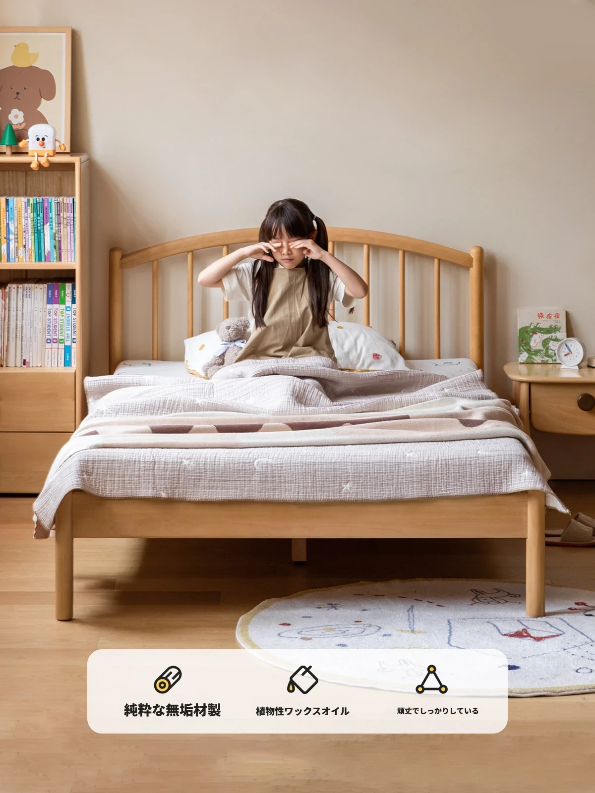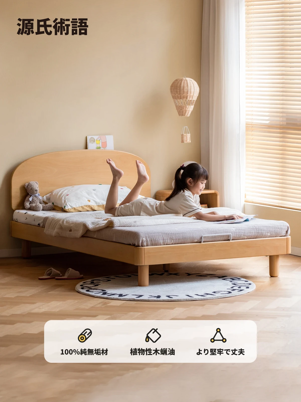 源氏木语子供用無垢材ベッド - 男の子・女の子に最適!シンプルなデザインで家庭にピッタリな高背もたれ付きシングルベッド。成長期の子どもたちに安心の寝具を提供します。