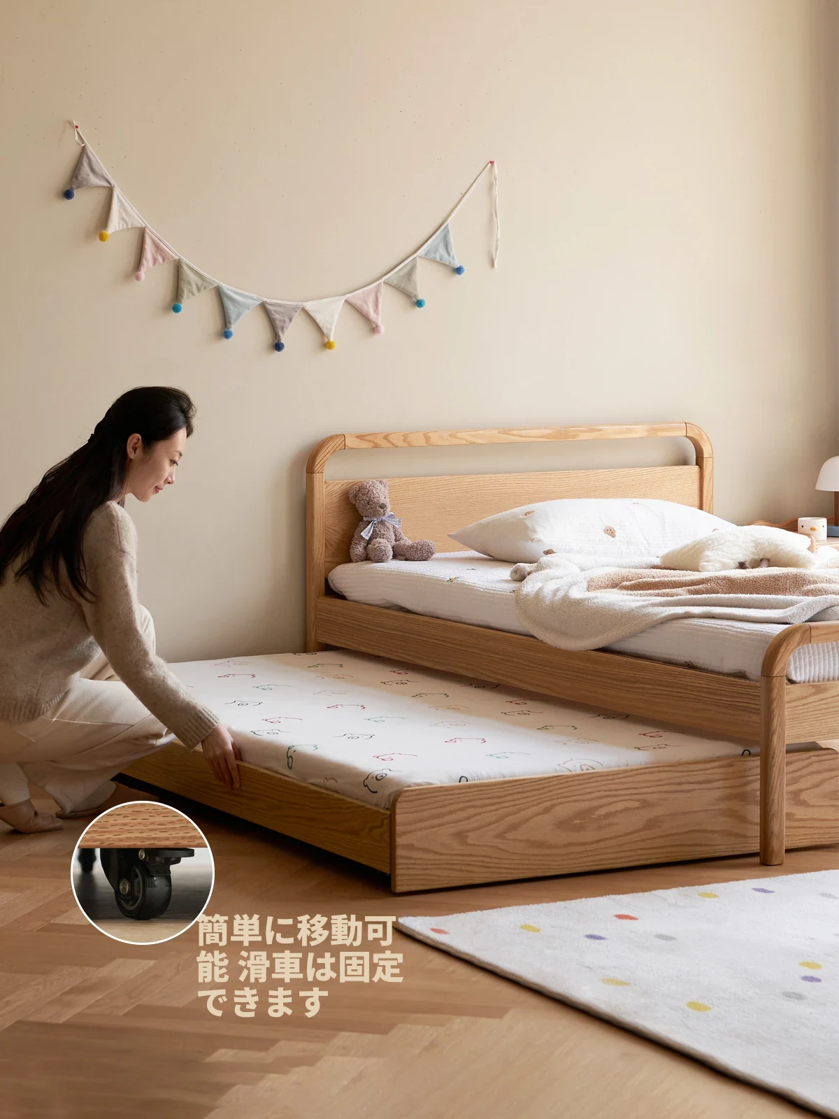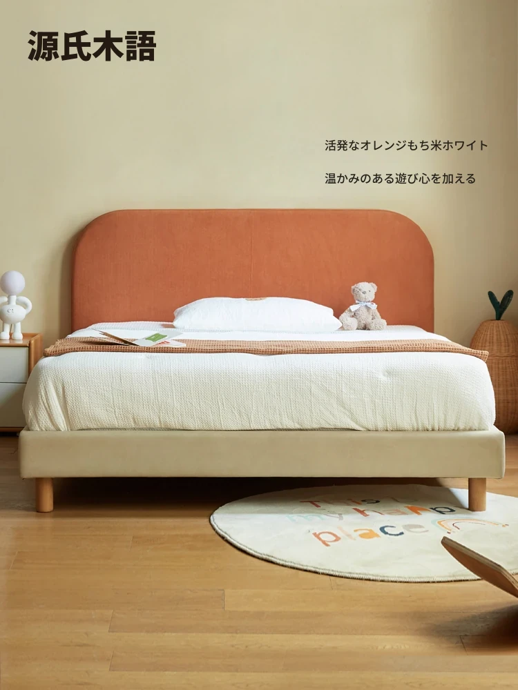 源氏木語の子供用無垢材ソフトバックベッド - 男の子の寝室にぴったりなシングルベッド!女の子のプリンセスルームにも最適な小型ソフトパックベッド。寛ぎと安全を兼ね備えた快適な睡眠空間を提供します。