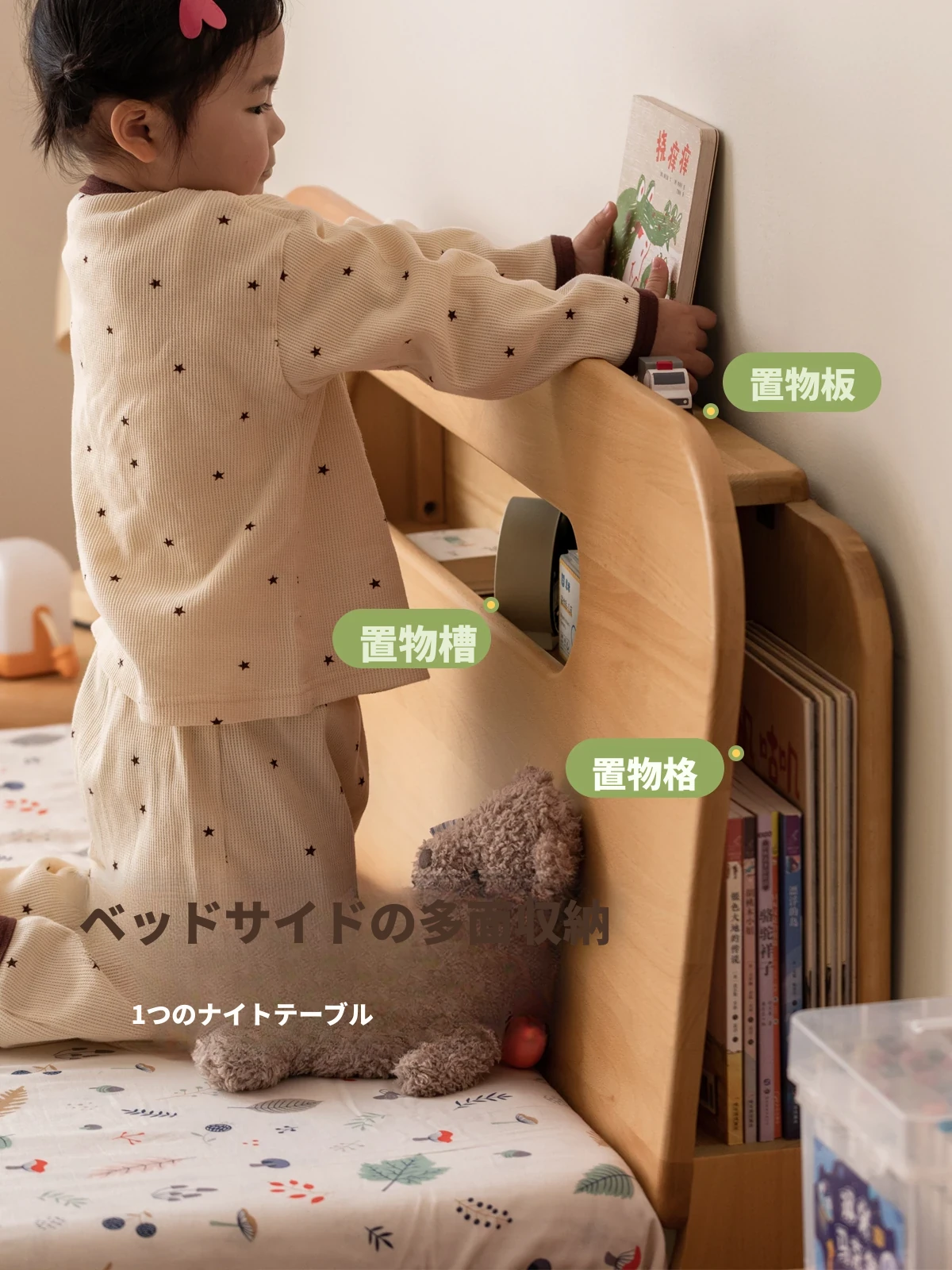 源氏木語の無垢材子供用ベッド|シンプルで多機能な収納付きハーフハイトベッド|北欧スタイルの小さな部屋にぴったりなコンビネーションベッド!