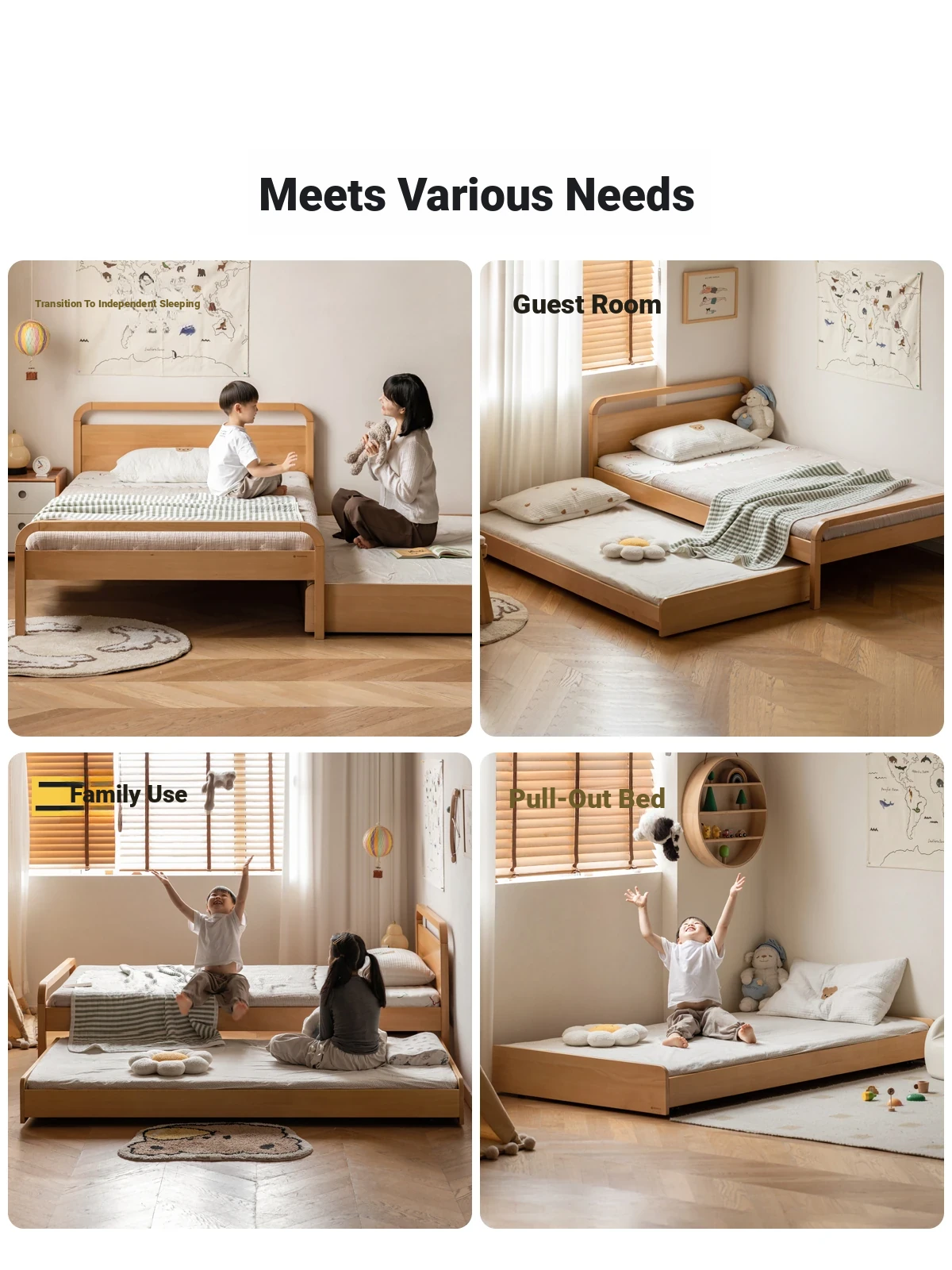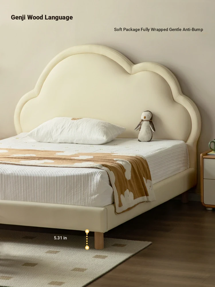Genji Mu Yu Modern Minimalist Children's Bed – Soft-Padded Single Bed for Boys and Girls, Made from Solid Wood, Perfect for Small Spaces