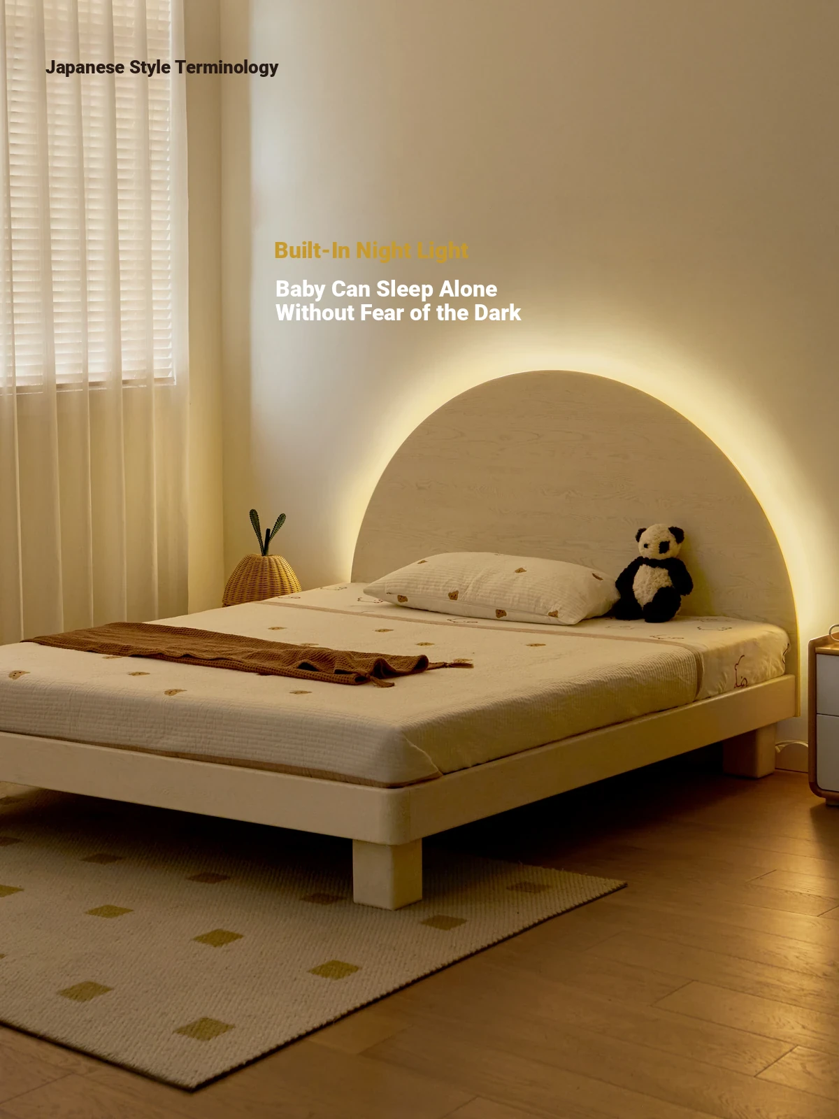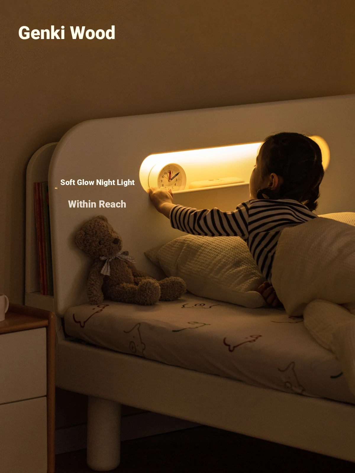 Genji Mu Yu Children’s Soft Bed - Stylish Minimalist Night Light Bed for Boys and Girls, Princess Design with Soft Backrest - Perfect for Cozy Bedrooms!