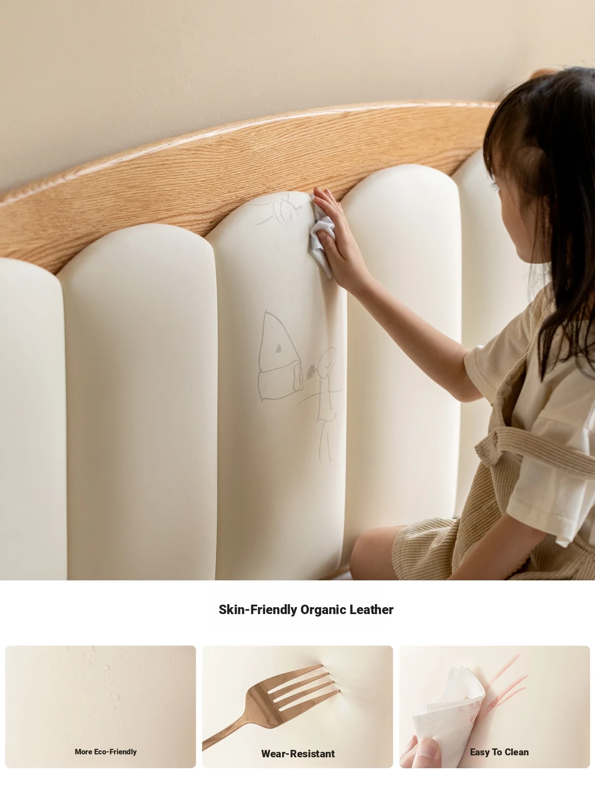GenieWood Children's Soft-Pack Bed - Minimalist Modern Design for Boys and Girls, Single Bed with Organic Leather, Luxurious Comfort and Soft Backrest