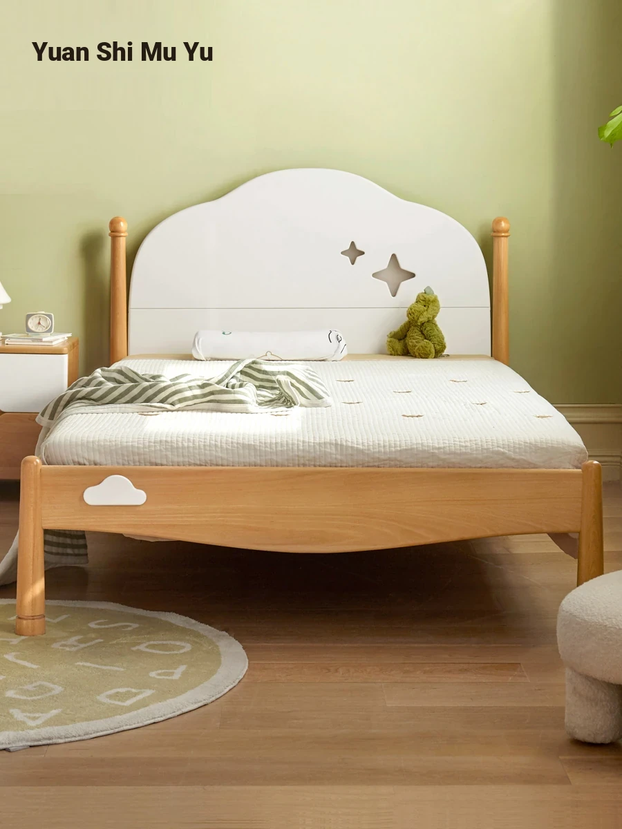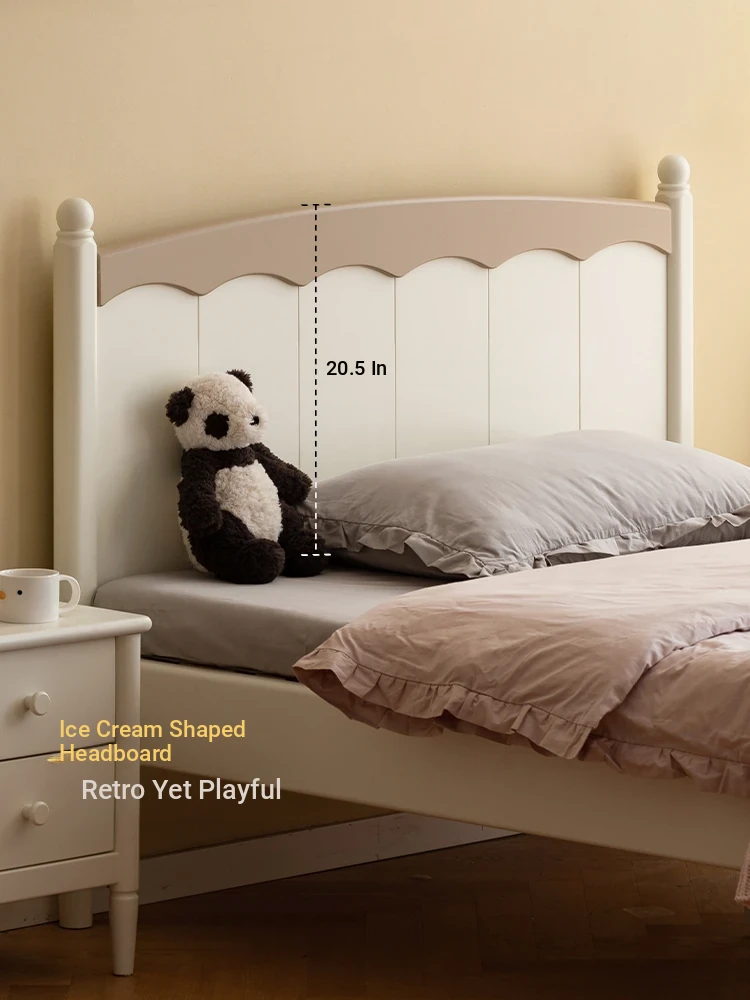 Genji Wood Children's Solid Wood Bed - Minimalist Cream Style, 1.2m Single Bed for Teens, Princess Design for Girls, Perfect for Modern Bedrooms