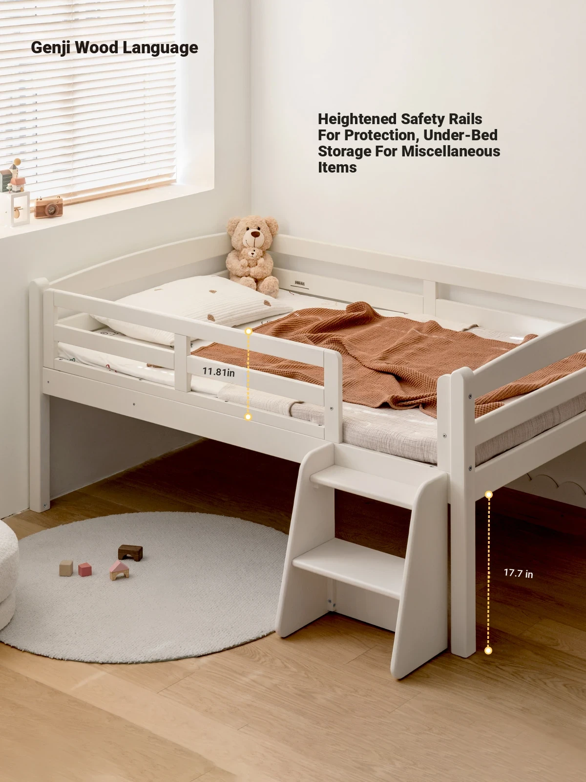 Genji Wooden Children's Solid Wood Bed - Modern Minimalist Soft-Padded Single Bed in Creamy White for Boys & Girls, Perfect for Cozy and Stylish Bedrooms!