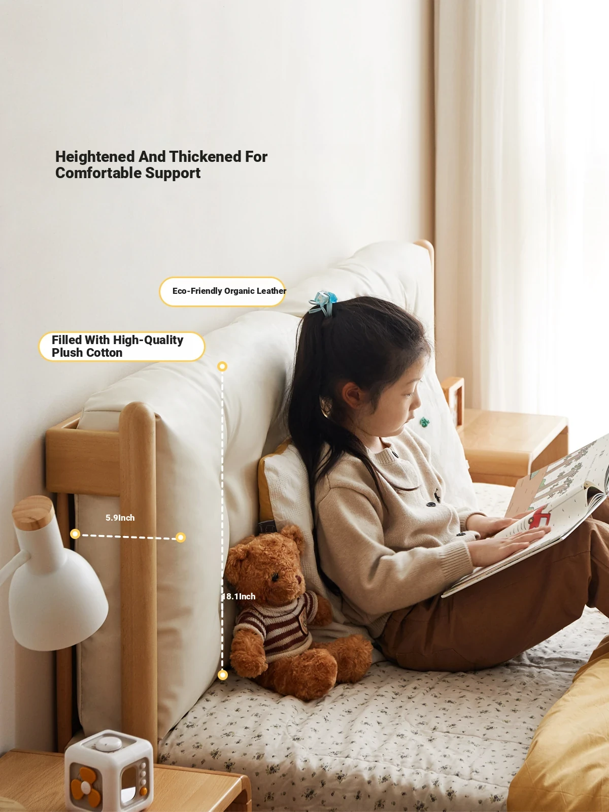 Genji Wood Children's Solid Wood Bed with Soft Headboard - Cozy Single Bed for Girls' Bedroom, Minimalist Design for Home Use