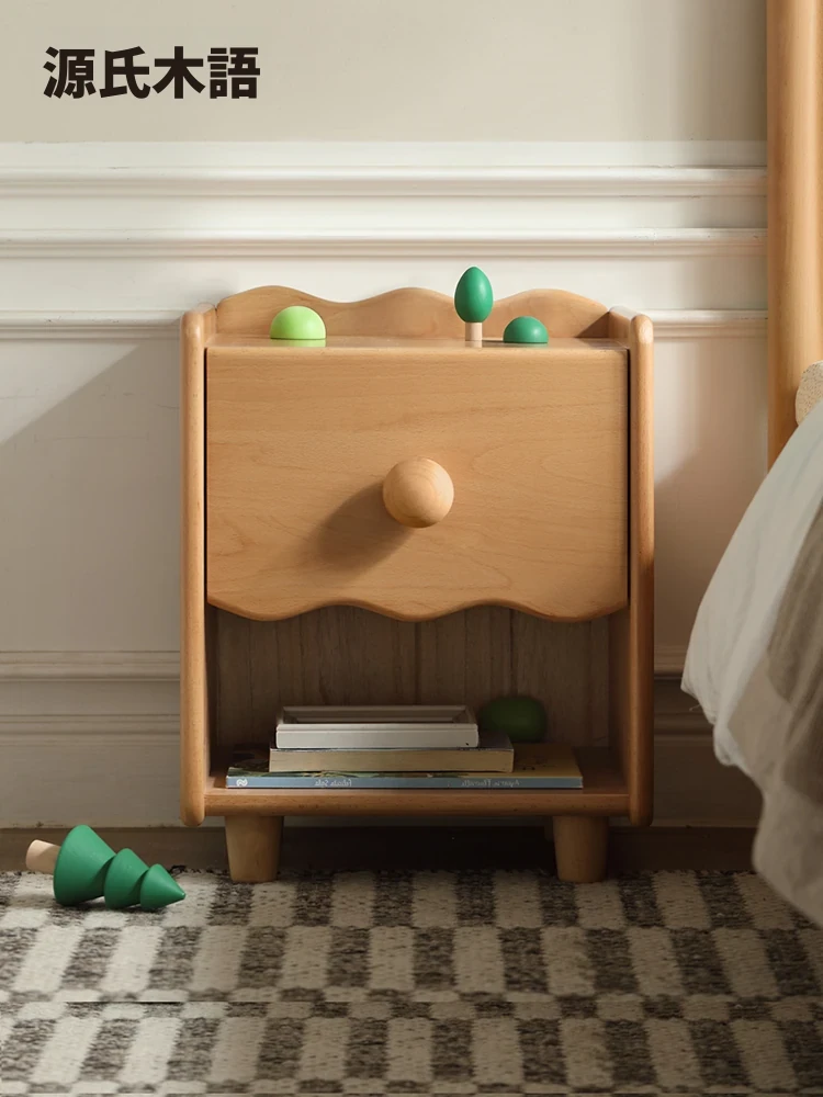 源氏木语北欧風シンプル実木ナイトテーブル|小型カートゥーン収納キャビネット|子供部屋や小さな寝室に最適な可愛らしい収納家具