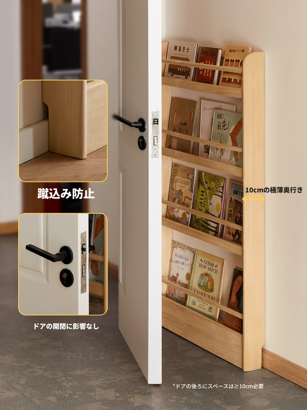 源氏木语の子供用無垢材書棚|幼児向け絵本スタンド|壁掛けスリム収納|おもちゃ収納ラック|おしゃれで機能的なフロアシェルフ