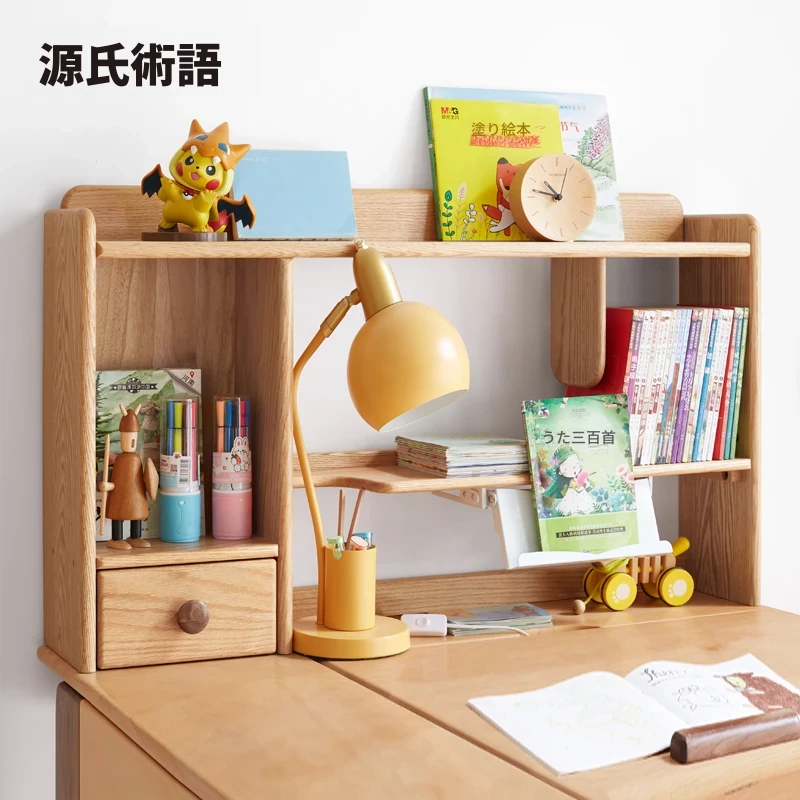 源氏木语 木の温もり感じる!子供用実木製デスク上ラック 学習デスク収納オーガナイザー 小スペース対応 家庭用デスクにぴったりな本棚