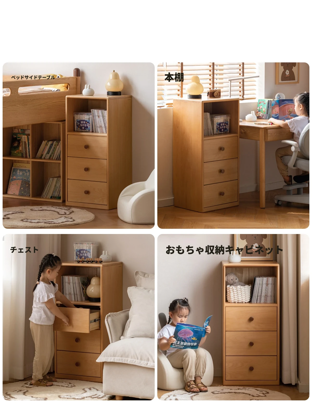 源氏木语の子供用無垢材ナイトテーブル|シンプルでおしゃれなホワイト収納|お部屋をスッキリ整理する小型サイドキャビネット