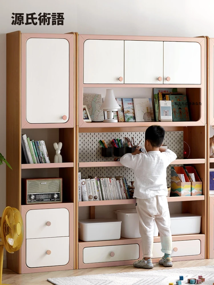 源氏木语 子供用無垢材書棚 読書スペースにぴったり!家庭用防塵収納キャビネット 壁付けコンビネーション収納庫 収納力抜群で、快適な読書環境を提供します!