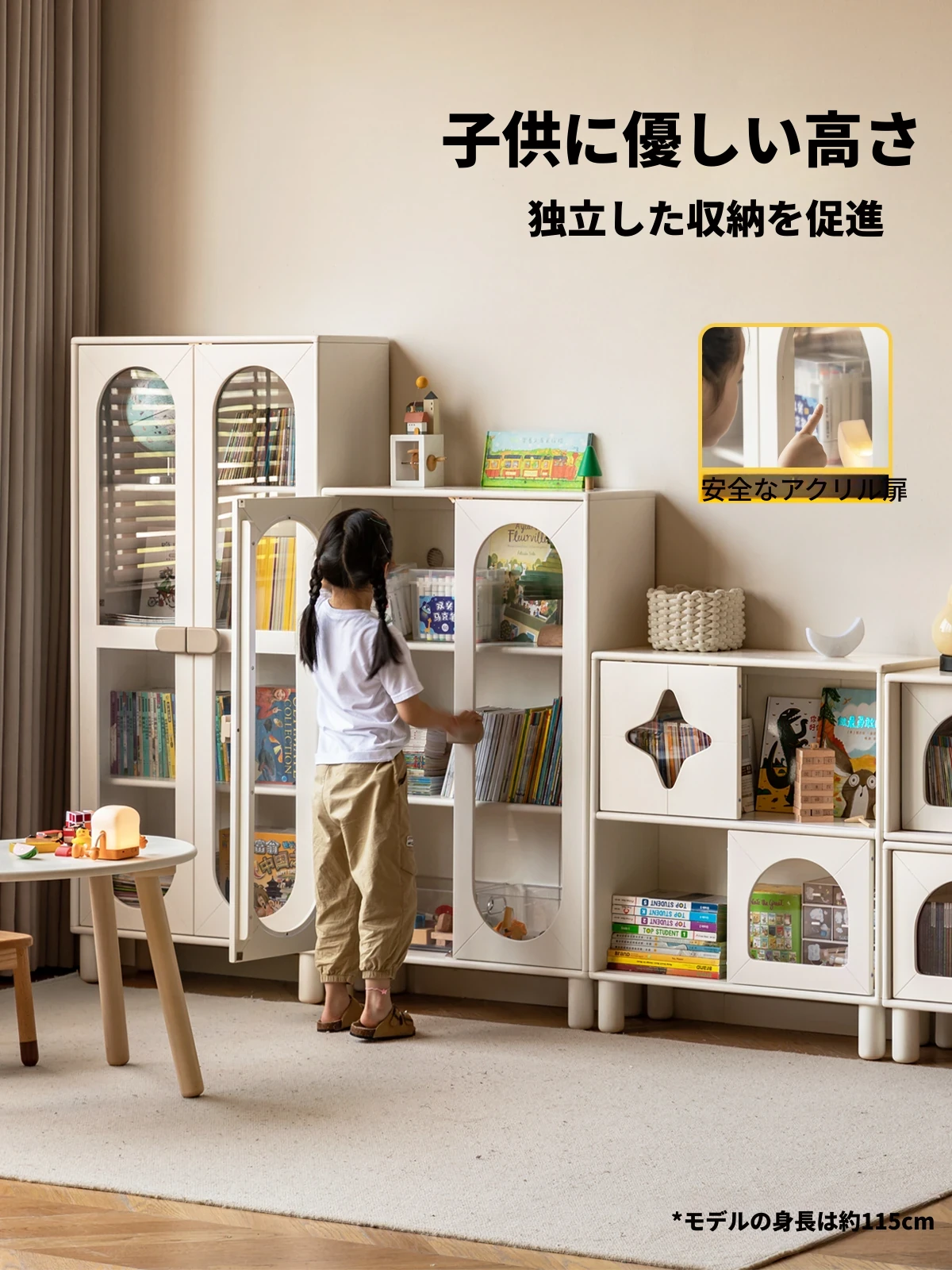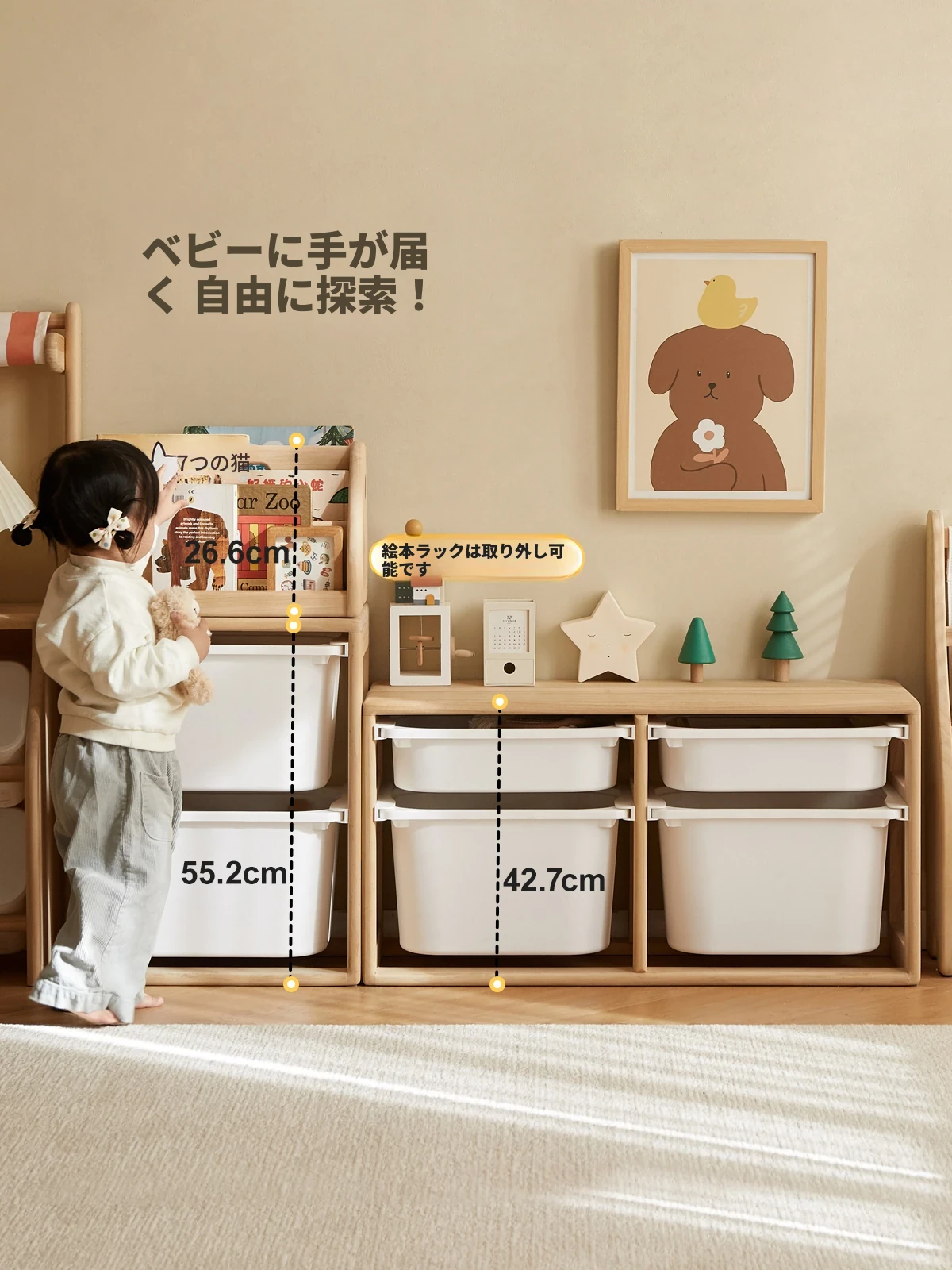 源氏木语の調整可能なキャビネット付きおもちゃ収納ラック - お部屋をすっきり整理!子供たちの遊び場を魅力的に演出し、収納も便利に!