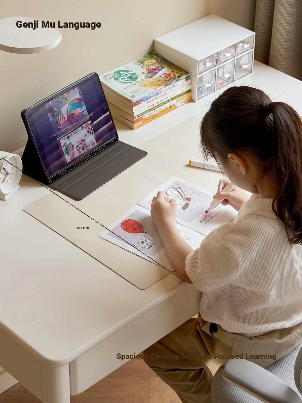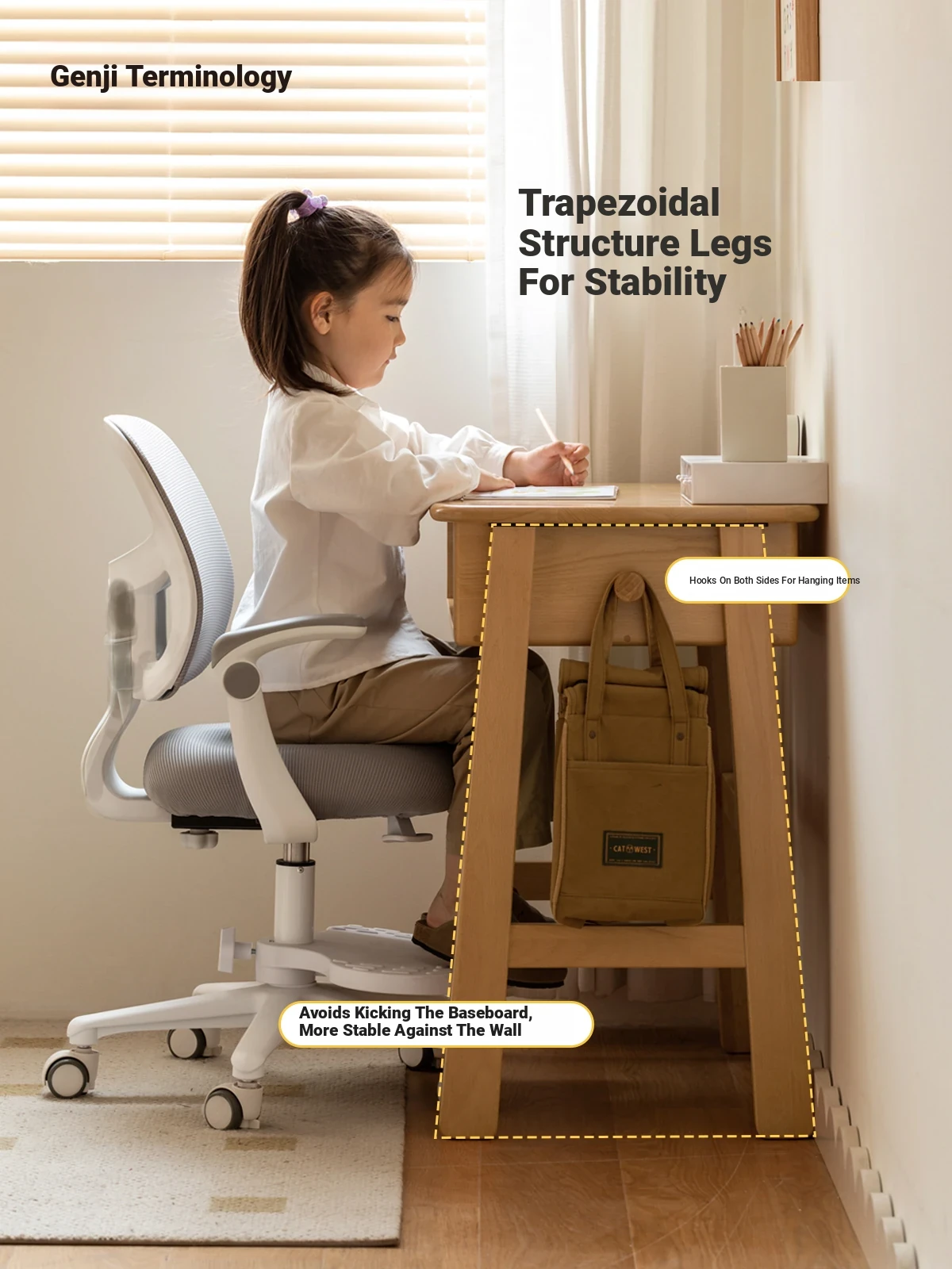 Genji Mu Yu Children's Solid Wood Writing Desk with Storage Shelf – Perfect Study Desk for Home and Students, Combining Style and Functionality