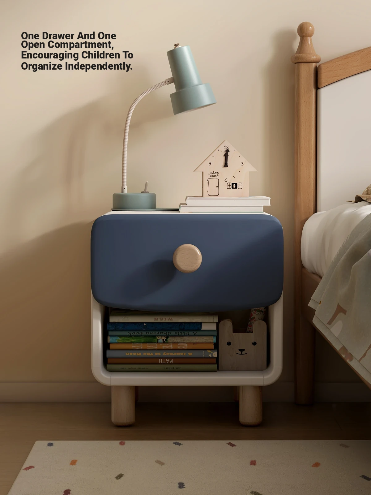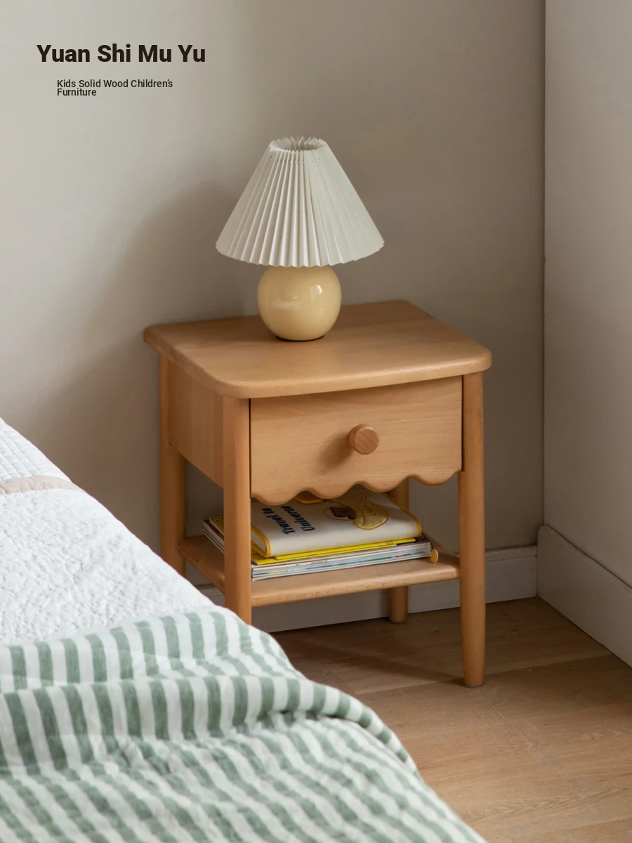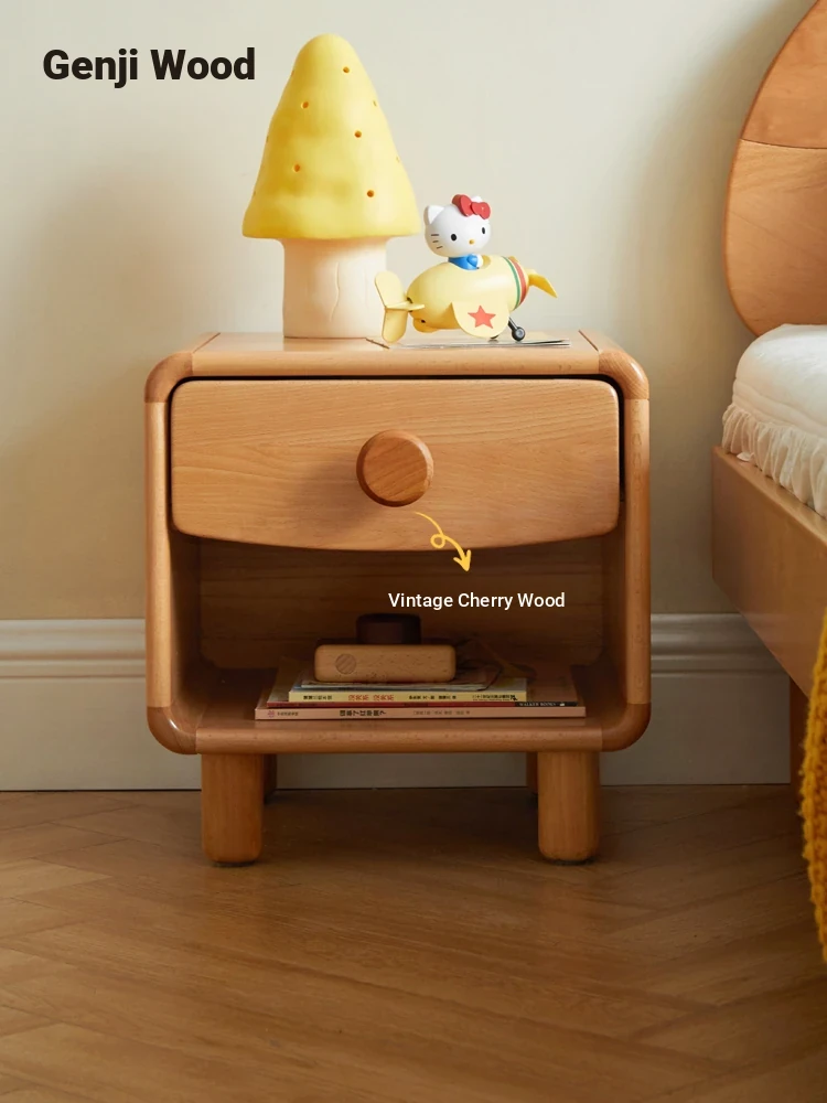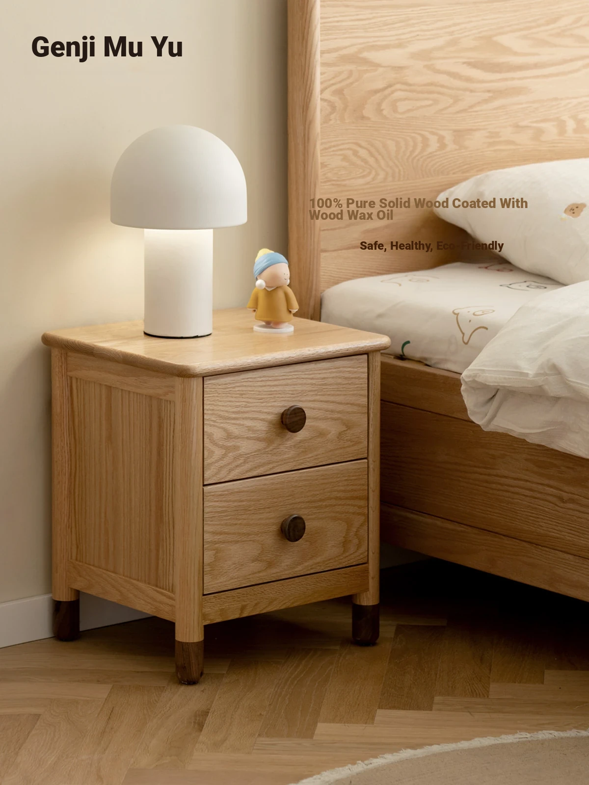Genji Mu Yu Kids Nightstand - Modern Minimalist Solid Wood Storage Cabinet for Bedroom, Compact and Functional Organizer for Children's Essentials