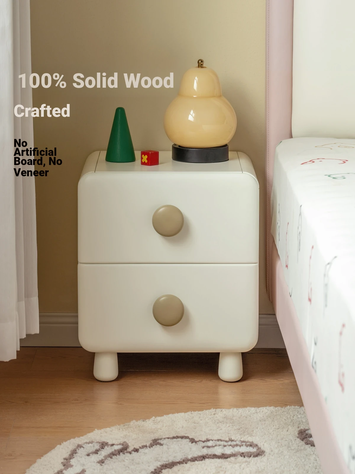 Genji MuYu Kids Solid Wood Nightstand - Creative Bedroom Storage Cabinet, Minimalist White Bedside Table for Organizing Small Spaces