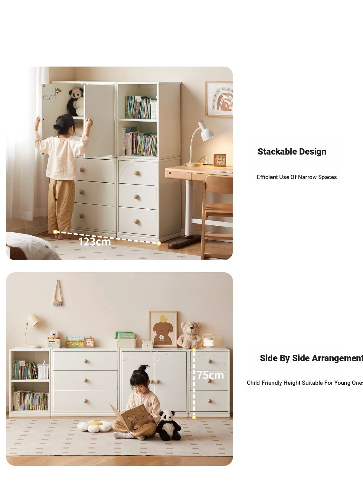 Genji Mu Yu Children's Solid Wood Wardrobe for Boys and Girls - Stylish Storage Cabinet for Baby’s Bedroom with Sliding Doors, Perfect for Home Organization