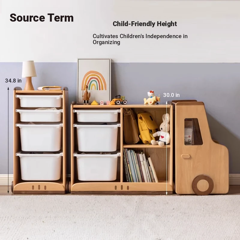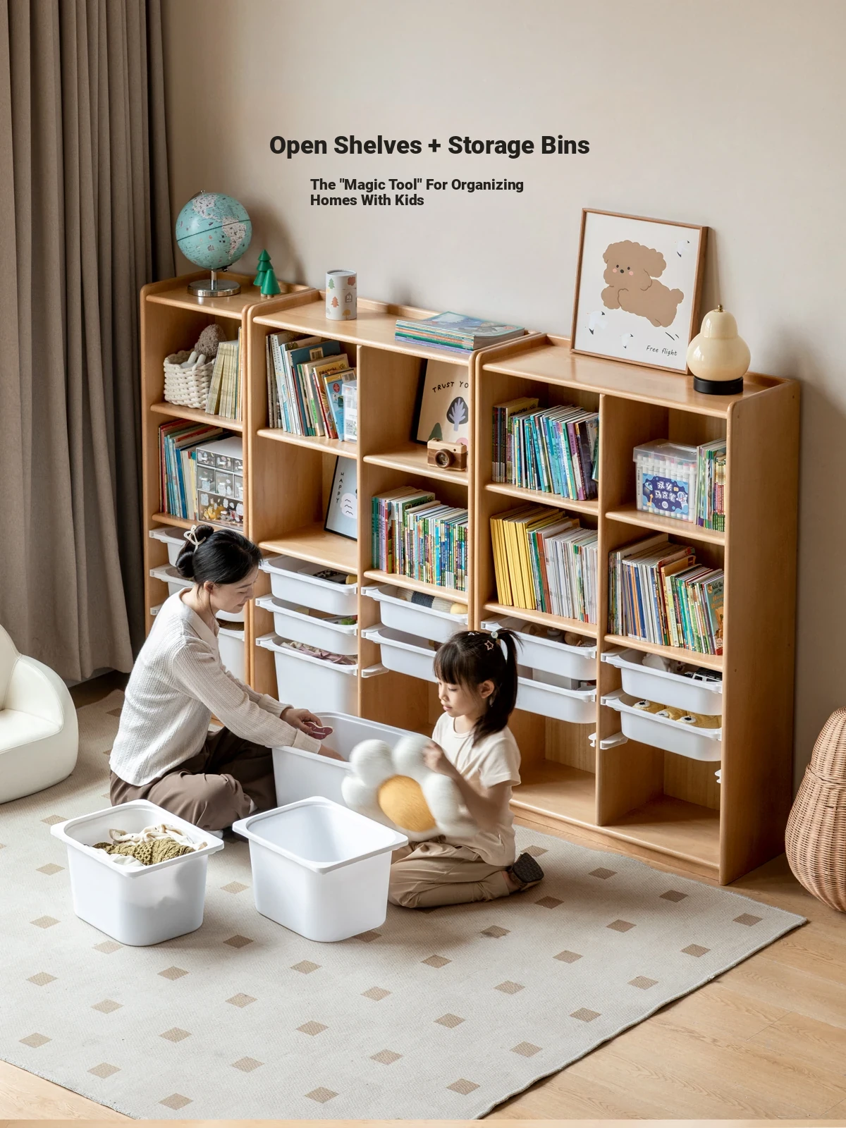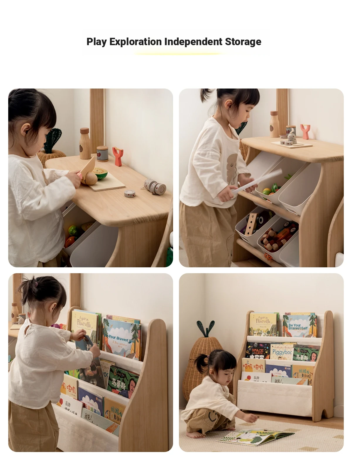 Genji Wooden Children's Solid Wood Bookshelf – Simple Floor Storage Cabinet for Home, Perfect for Organizing Toys and Books in Style!