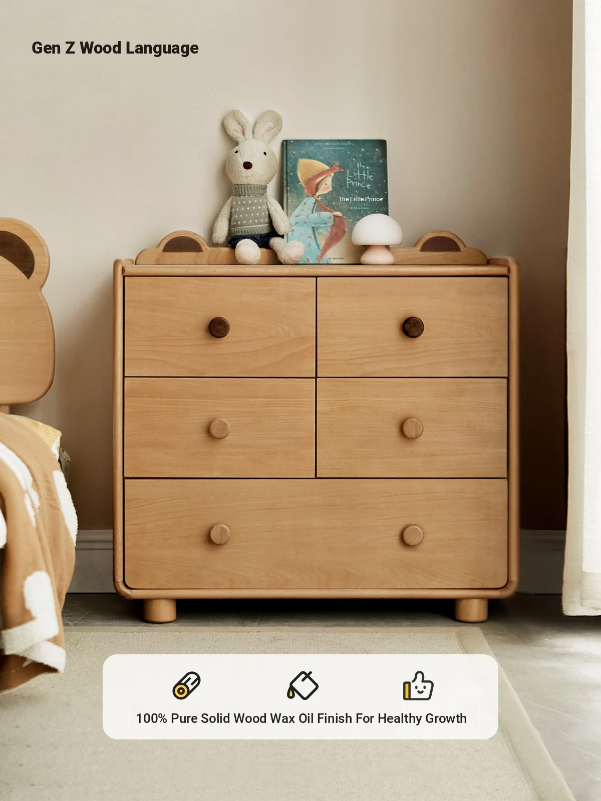 Genji Wooden Children's Solid Wood Drawer Chest - Minimalist Wall-Mounted Storage Cabinet for Modern Bedrooms, Perfect for Organizing Toys and Essentials!
