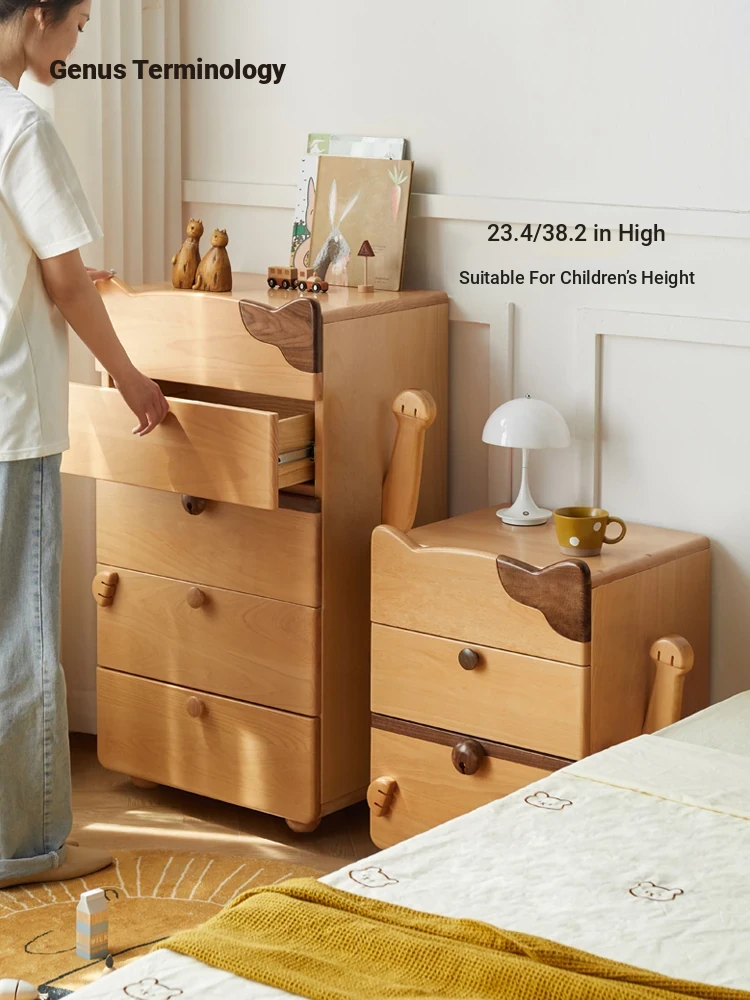 Genji MuYu Modern Minimalist Kids Nightstand – Space-Saving Solid Wood Storage Cabinet for Small Bedrooms, Perfect for Home Organization and Bedside Essentials.