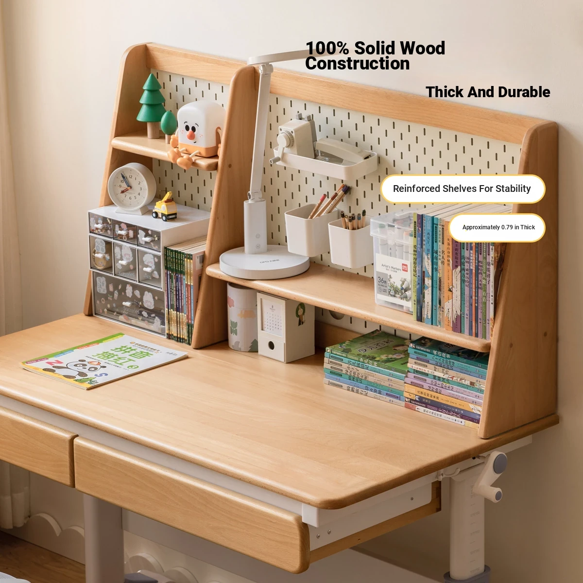 Genki Wood Children's Solid Wood Desk Storage Shelf - Versatile Study Table Organizer for Home Learning Spaces, Perfect for Students!