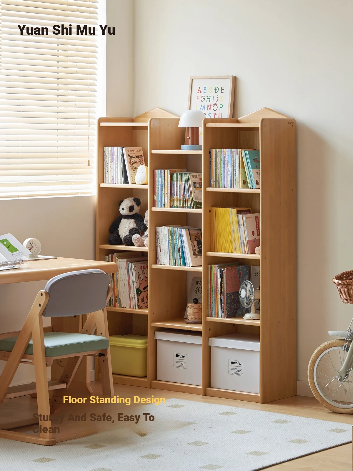 Genji Mu Yu Kids' Solid Wood Bookshelf – Stylish Floor Storage Cabinet for Toys, Ideal for Reading Areas and Display – Functional Bookcase for Home Use