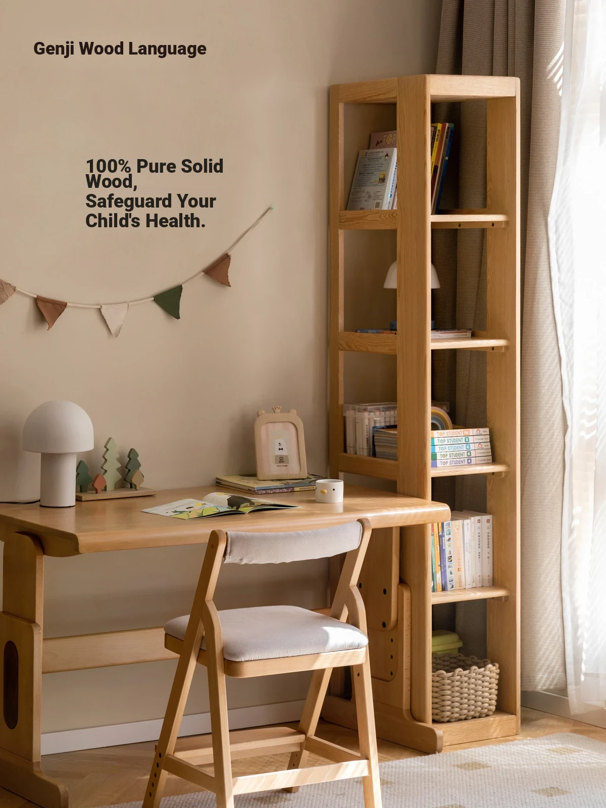 Genji Wooden Children's Solid Wood Bookshelf and Learning Desk - Adjustable Storage Shelf for Books and Supplies, Perfect for Organizing Your Child's Study Space!