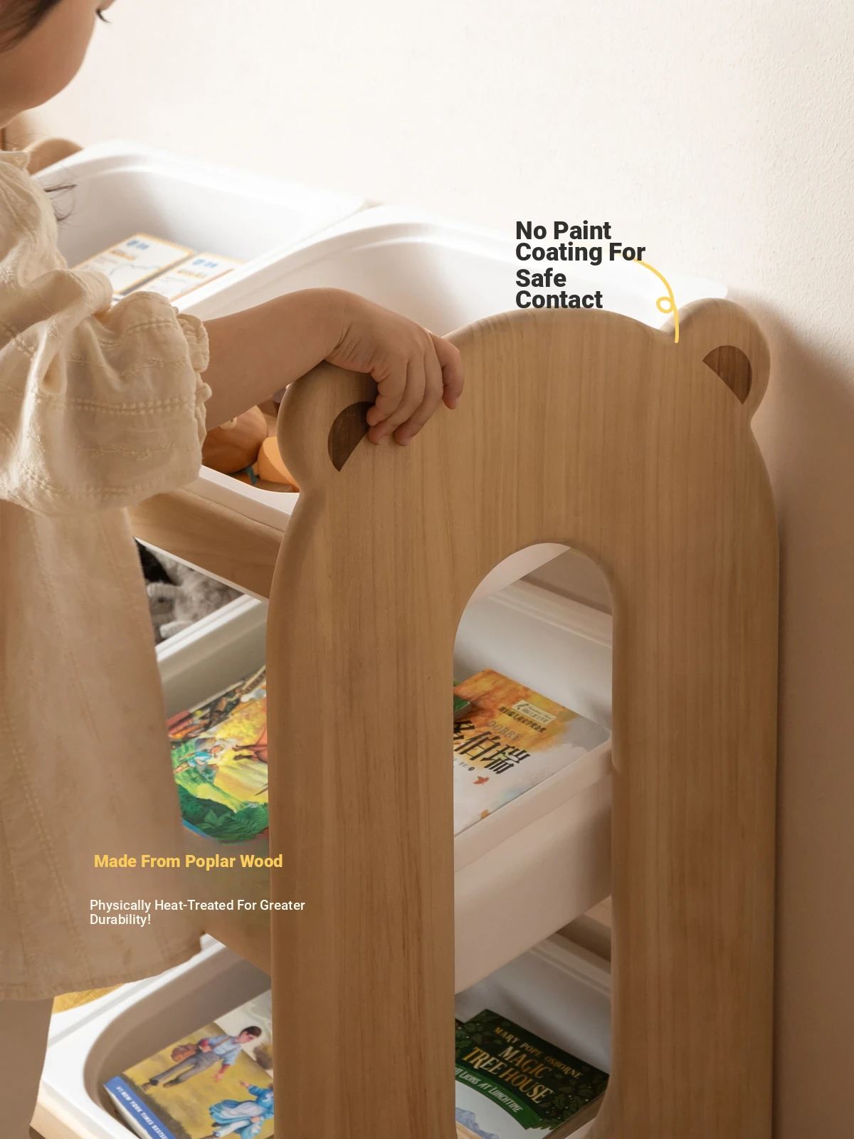 Genki Wood Children's Storage Rack - Solid Wood Book and Toy Organizer with Multi-Compartment Design for Simple and Stylish Display Solutions. Perfect for Kids' Rooms and Play Areas!