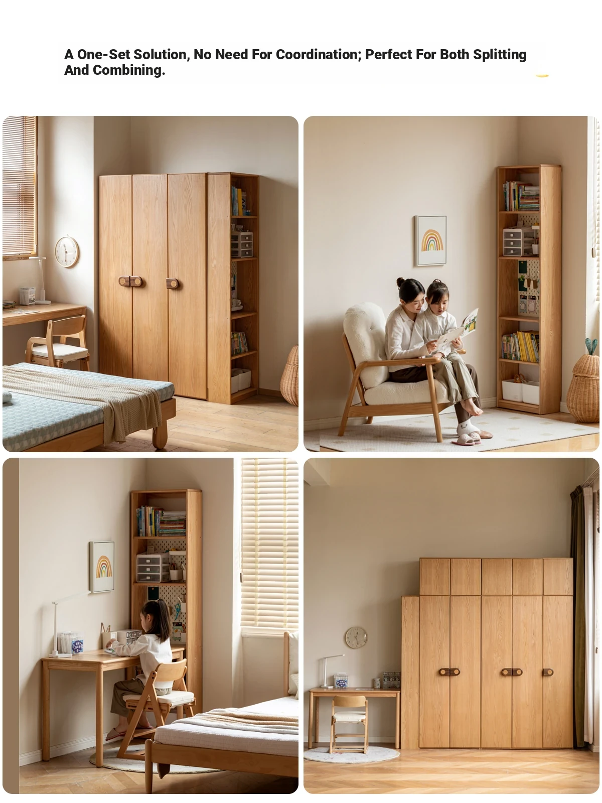 Genji Mu Yu Children's Solid Wood Wardrobe – Minimalist Storage Cabinet for Small Spaces, Perfect for Bedrooms and Playrooms, Featuring a Stylish and Functional Design.