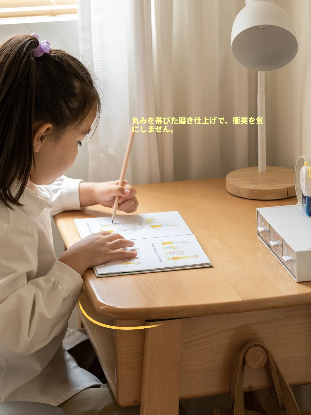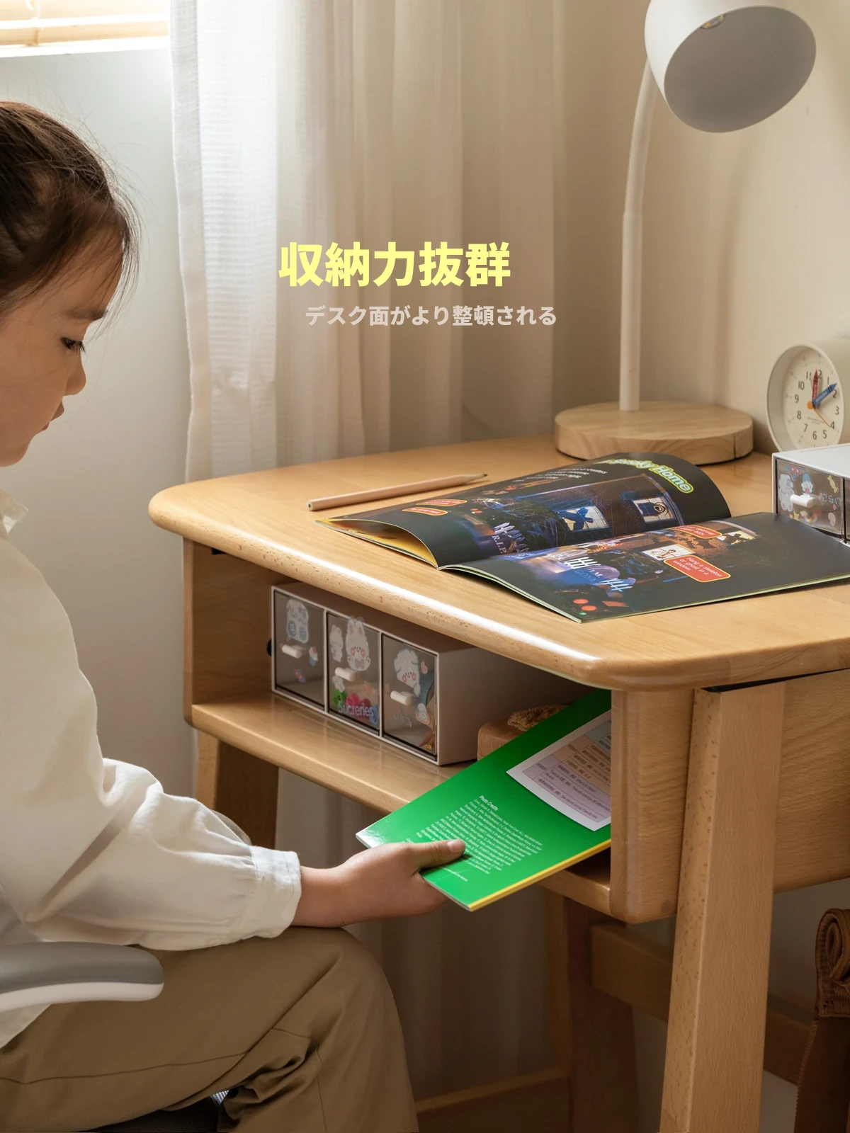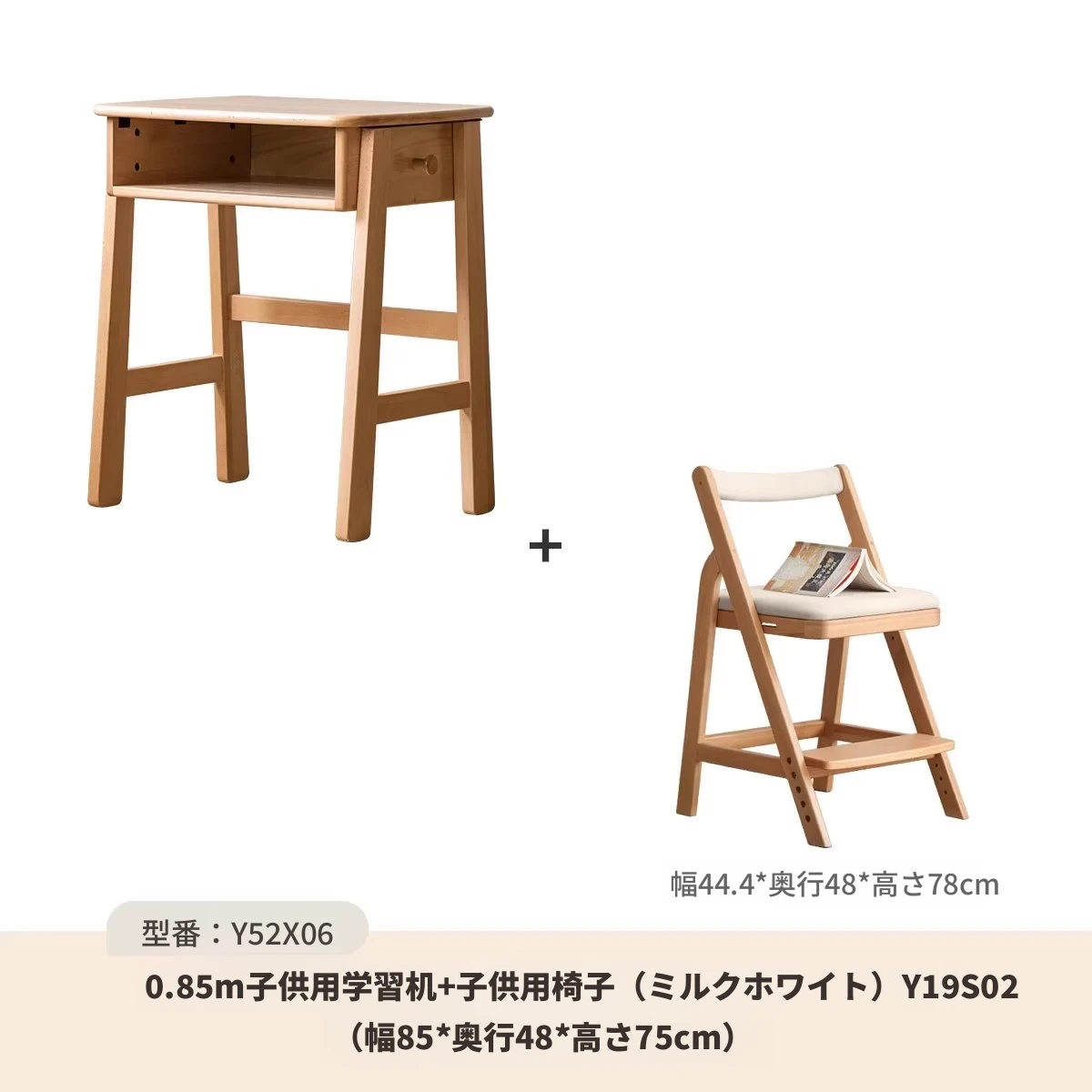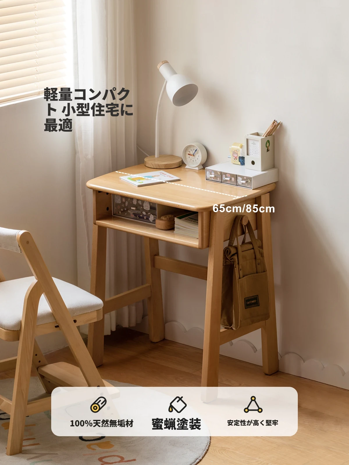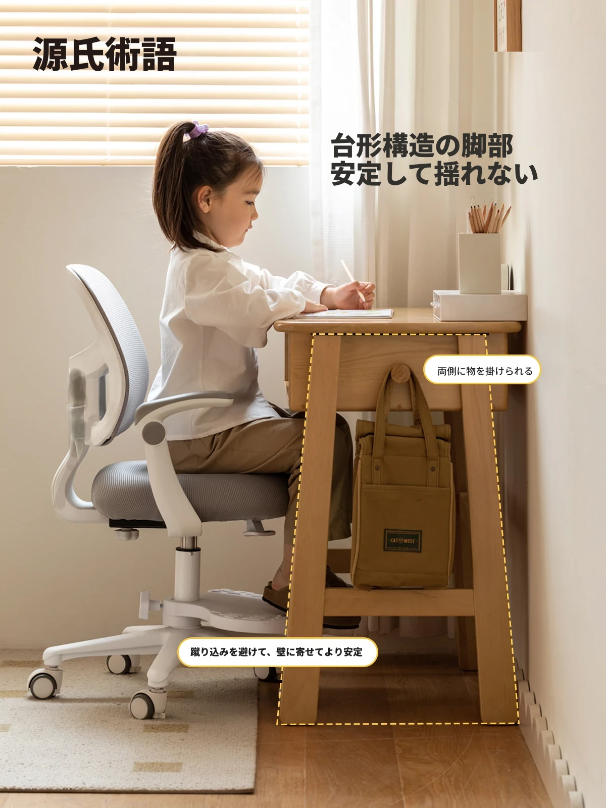 源氏木語の子供用天然木製学習デスク|中高生向け|書きやすいデザインの机と椅子セット|小スペースにも最適な家庭用書斎デスク