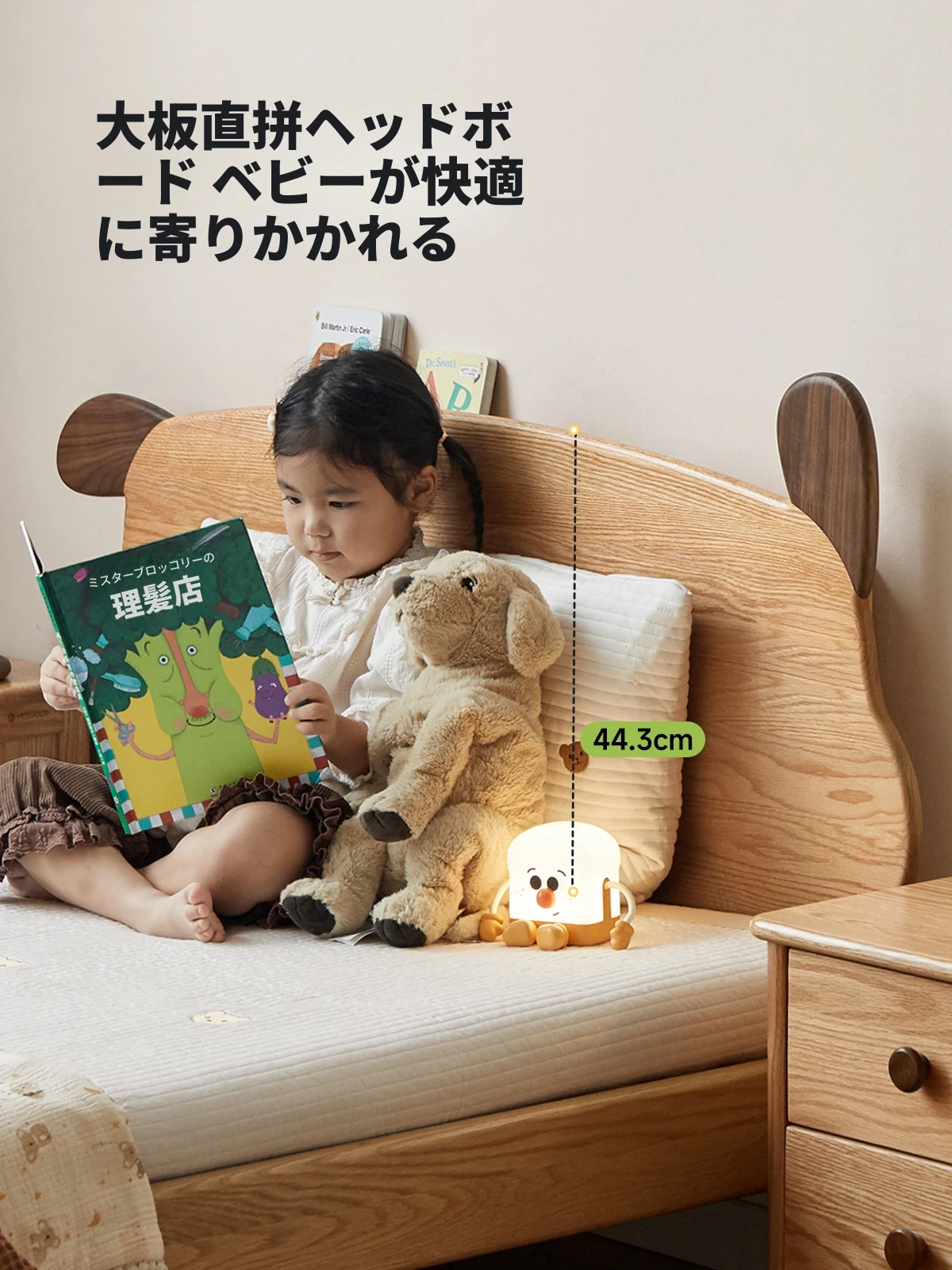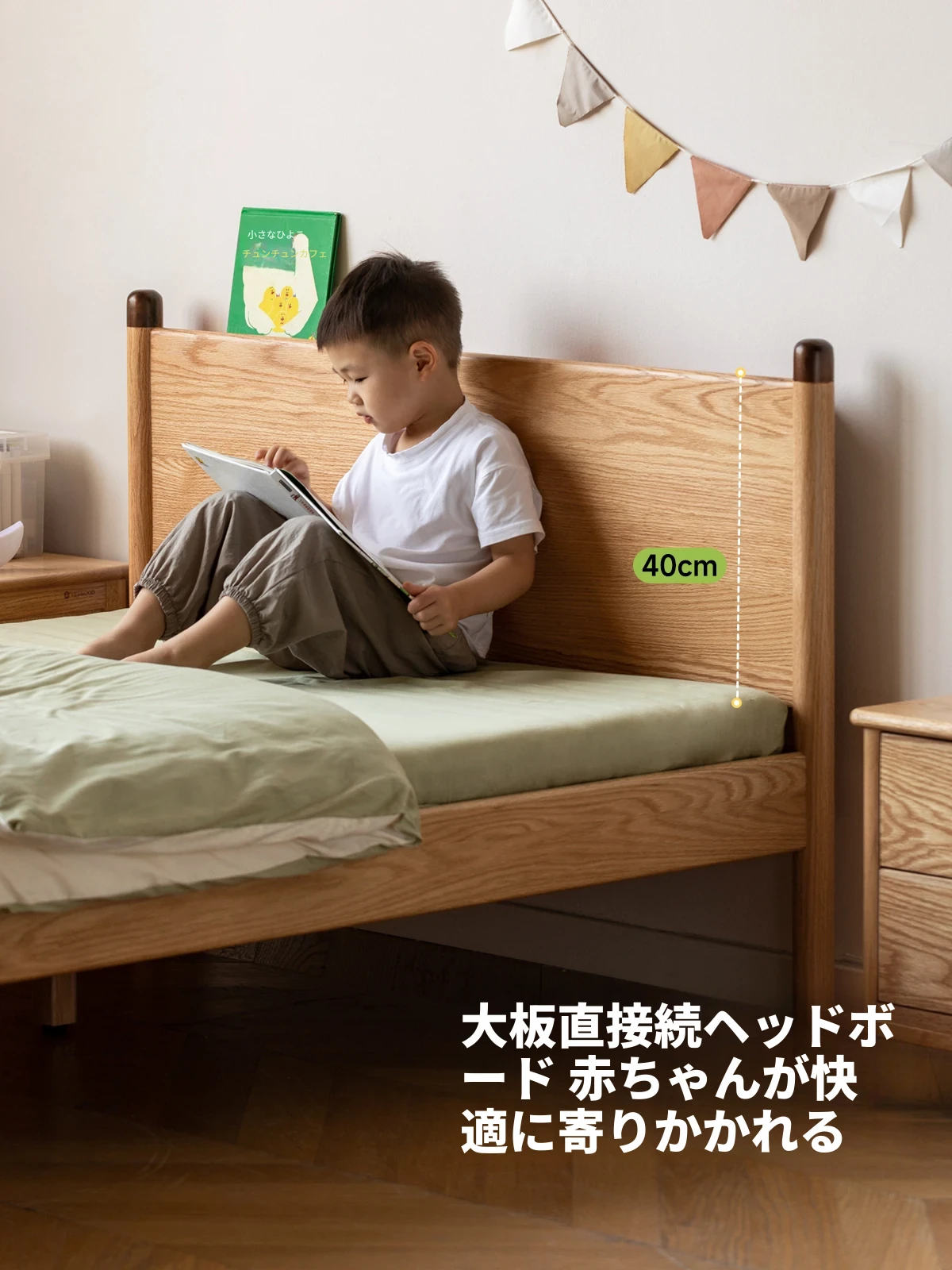 源氏木語の子供用本格的な木製ベッド|男の子・女の子向け|クリーミーな風合いのハイバックソフトパッキングシングルベッド|快適で安全なおやすみ空間を提供!