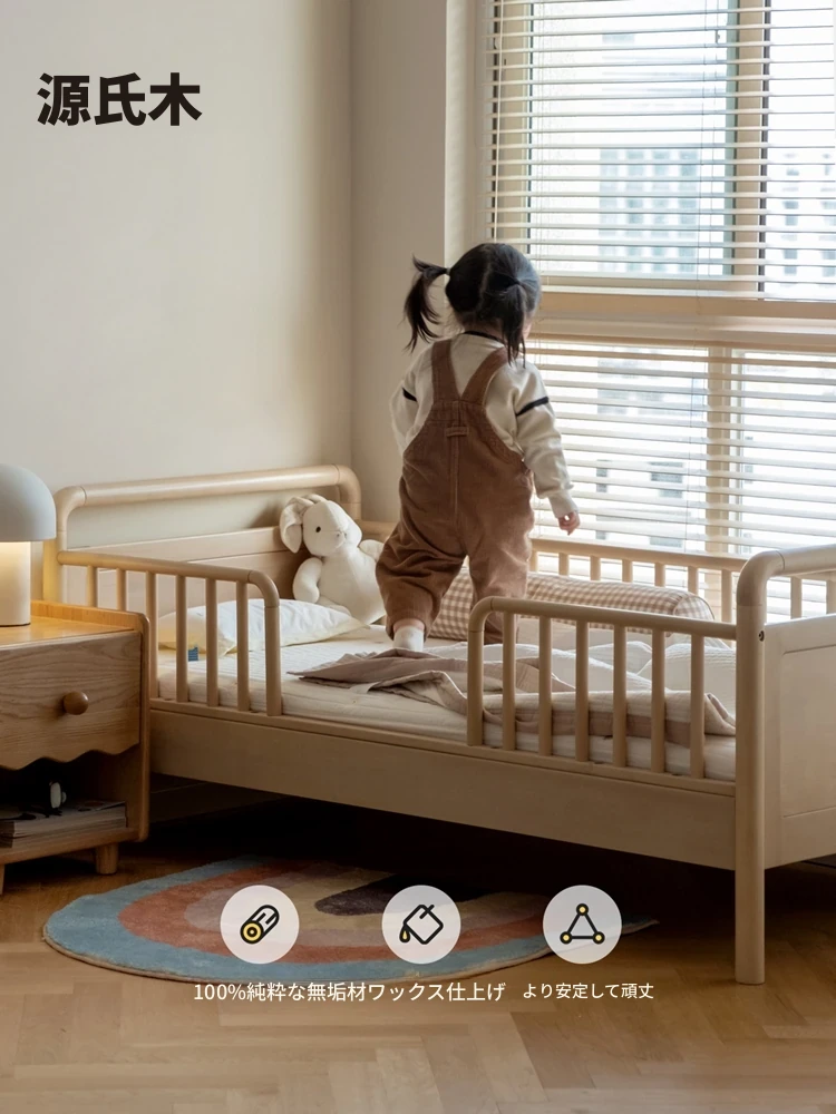 源氏木语子供用天然木製ベッド|家族全員に最適なマルチ機能・安全ガード付き|男の子・女の子兼用のワイド接続ベッド!快適な眠りを提供します!