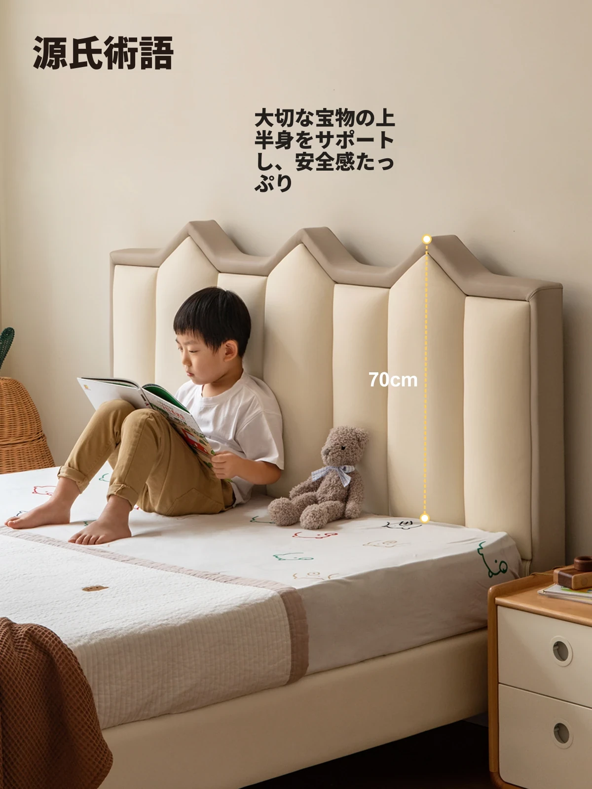 源氏木语の子供用レザー製ベッド、クリーム風テイストのシングルベッド(1.5m)—男の子も女の子も喜ぶシンプルでふんわりしたデザイン、快適な寝心地でお子様の成長をサポート!