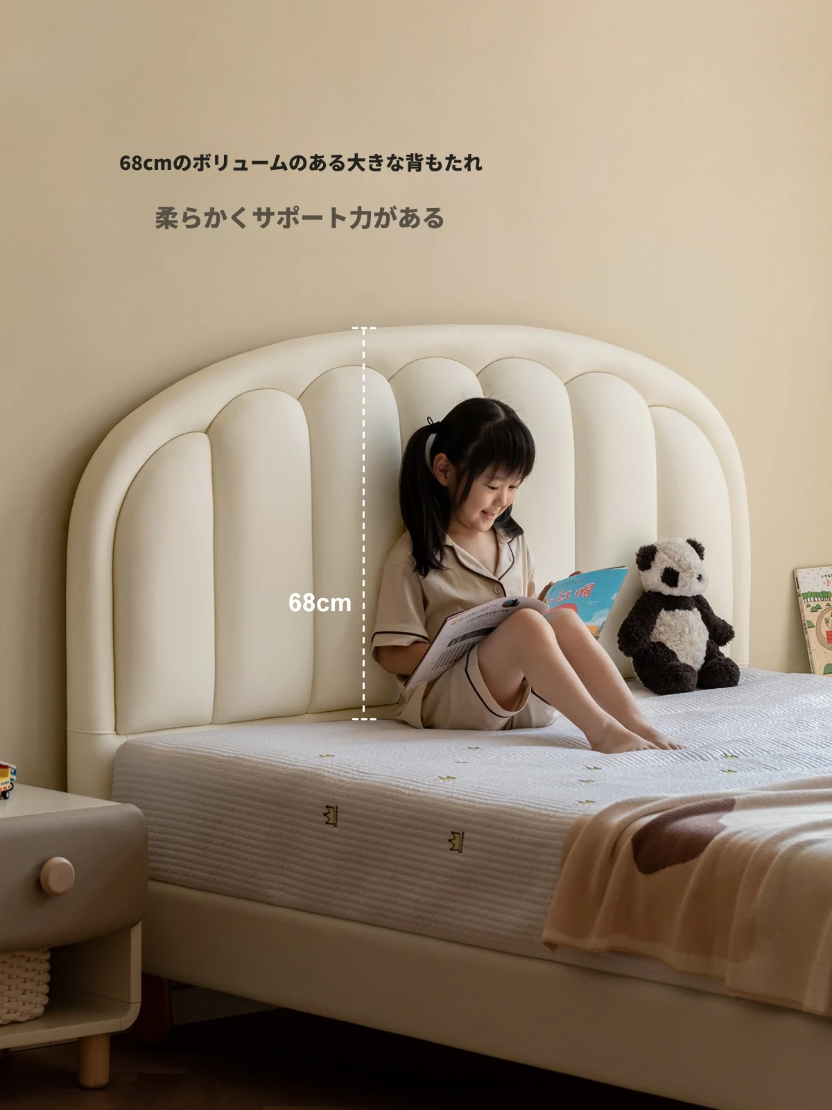 源氏木语 子供用ソフトパッキングベッド | ホワイトクリーム風 プリンセスベッド | 男の子・女の子向け シンプルで可愛い小床 | ソフトな背もたれ付きで安心快適な眠りをサポート!