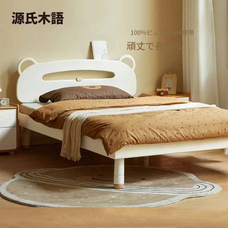 源氏木语 子供用無垢材ベッド 男の子・女の子のためのシンプルでエレガントなホワイトベッド、ティーンエイジャー向け、寝室にぴったりな可愛いデザイン